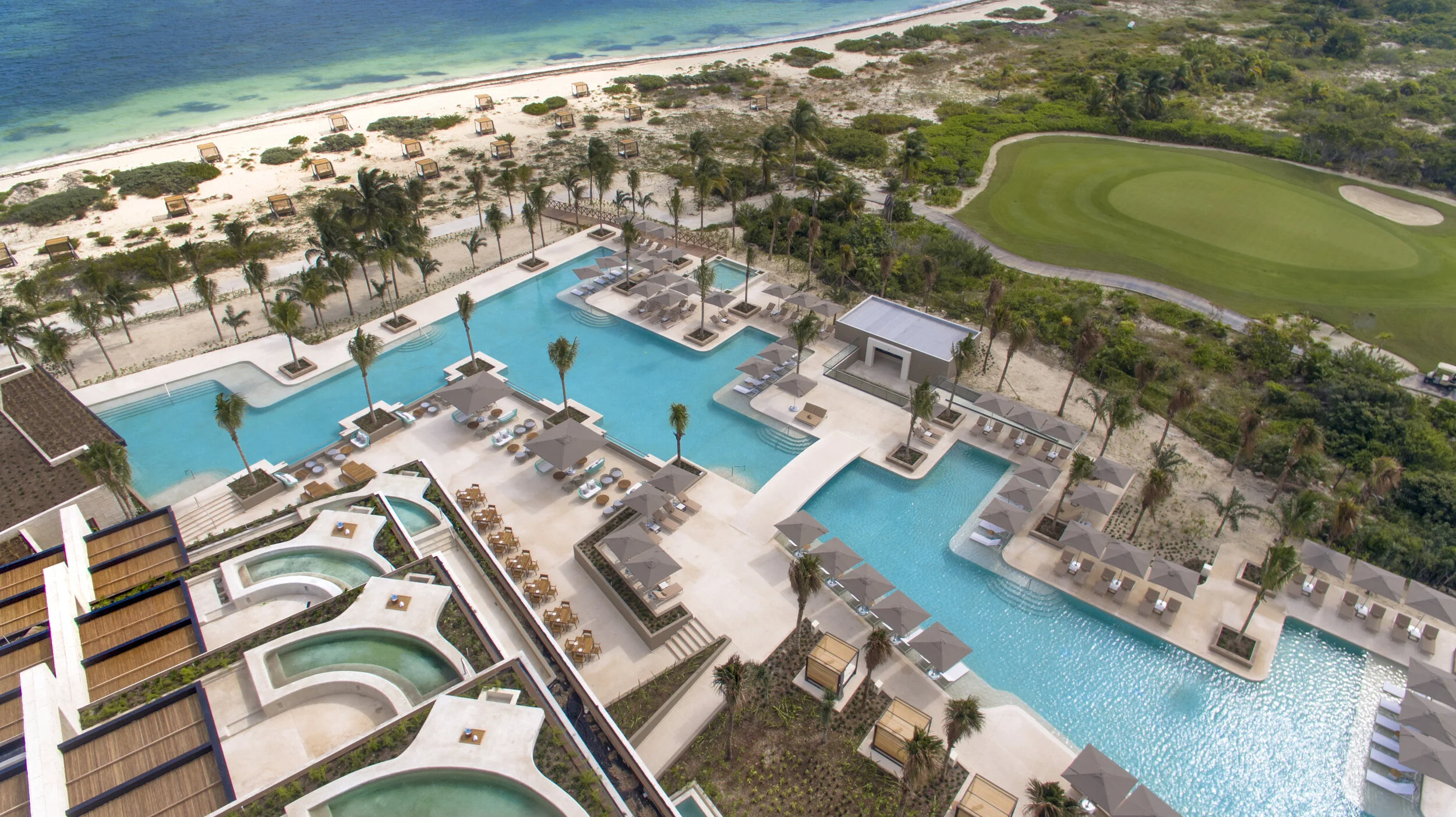 5+ star all-inclusive resort for adults and 16+ guests that offers a fantastic concept inspired in contemporary Mexican design and art. Located on the beach and the spectacular 18-hole Playa Mujeres Golf Course designed by Greg Norman. The impeccable architecture and interior design on the resort premises and suites have been recognized by international awards such as “Gold Key Award 2020 for Excellence in Hospitality Design’ by the ‘Boutique Design’ international magazine in categories like ‘Best Upscale Guest-room’ and “Best Resort’.